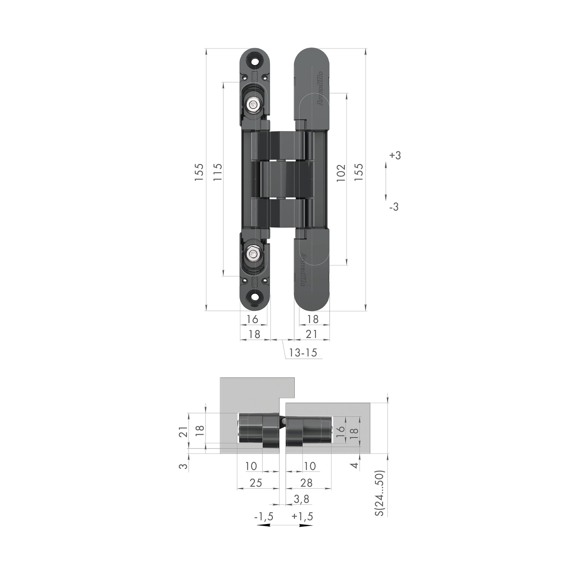 Петля Armadillo (Армадилло)скрытой установки U3D3000.VPG BL черный TECH
