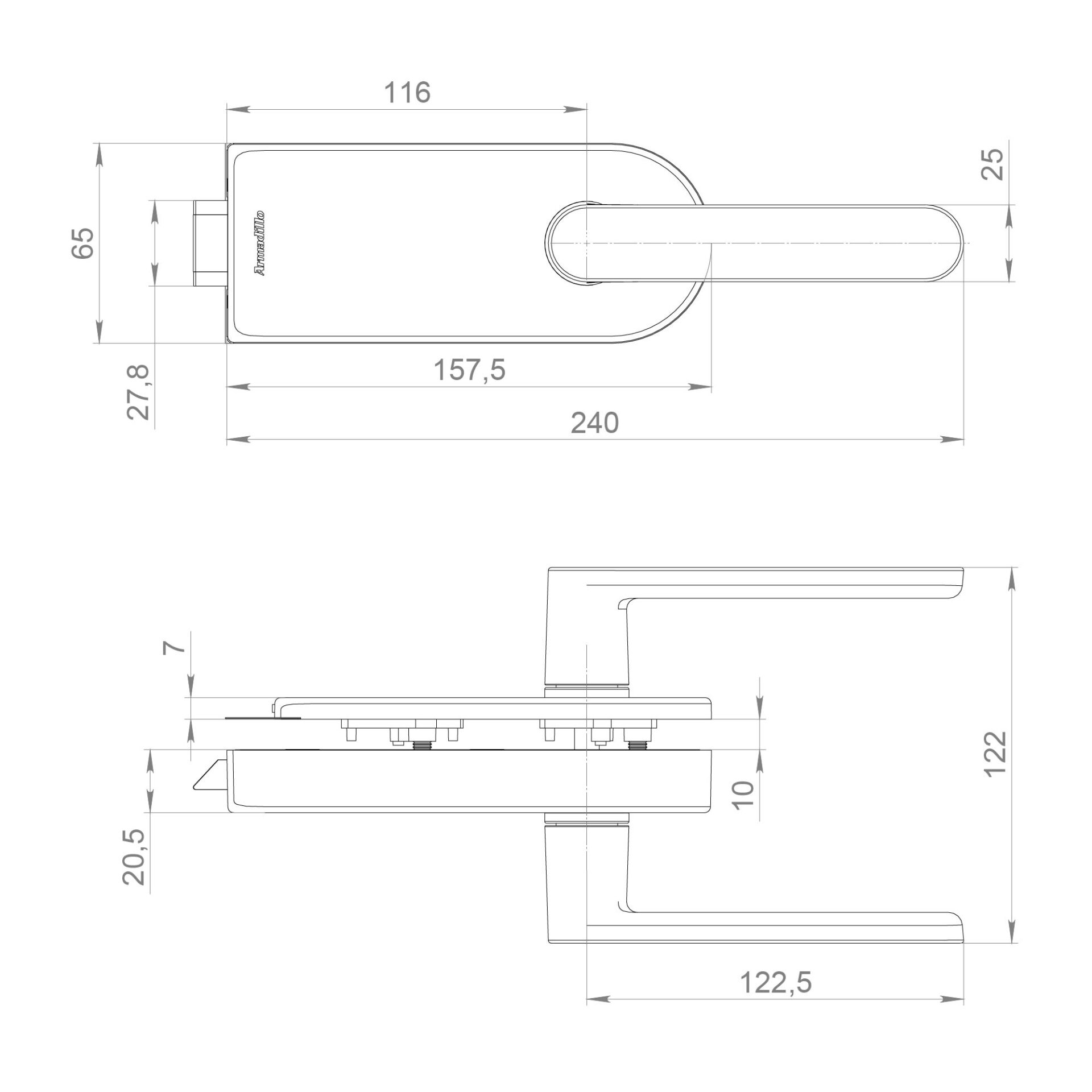 Комплект: замок+ручка Armadillo (Армадилло) для стеклянной двери Space.GL.LWC AL алюминий