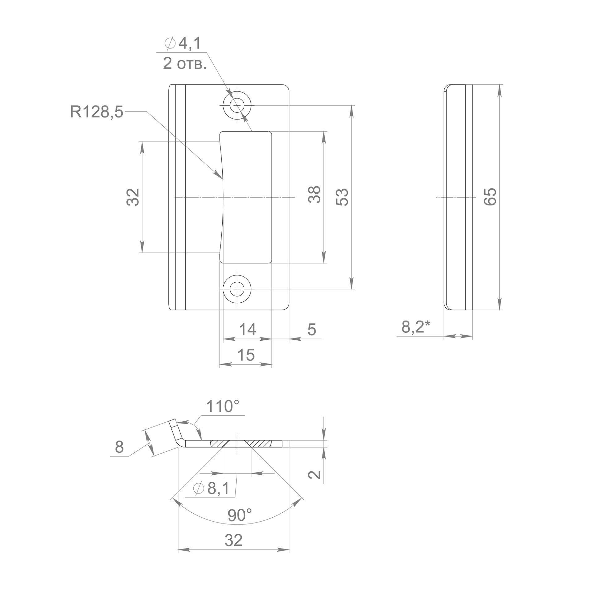 Ответная Armadillo (Армадилло) часть замка на стекло Space.GL.GK AL алюминий