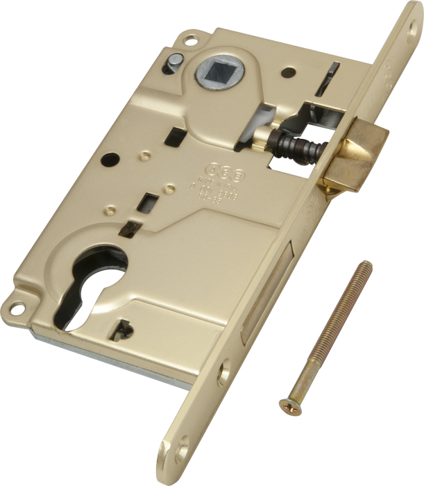 Корпус врезного замка AGB (АГБ) под цилиндр CENTRO B01025.50.03 ригель+защёлка (латунь)